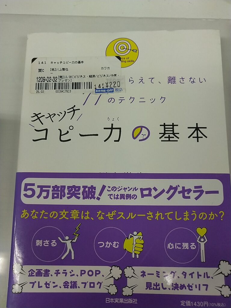 地方公務員、本を読む。#コピーライティング 2026年2月28日 最終更新日時 : 2026年2月28日 太っちょおじさん DSC_0838 『キャッチコピーの基本』、本日読了しました。(2026/2/27) キャッチコピーが与えるインパクトはよくわかりました。「東大・京大で一番読まれた本」、「インテル入っている」、「下剋上エクスタシー」などなどよく目につきますよね。なかなかキャッチコピーを考えることはないですが、印象に残るキャッチコピーのパターンは頭に入れておく価値ありです。おススメ度:★★、難易度:★ \ 最新情報をチェック / FacebookXBlueskyHatenaCopy